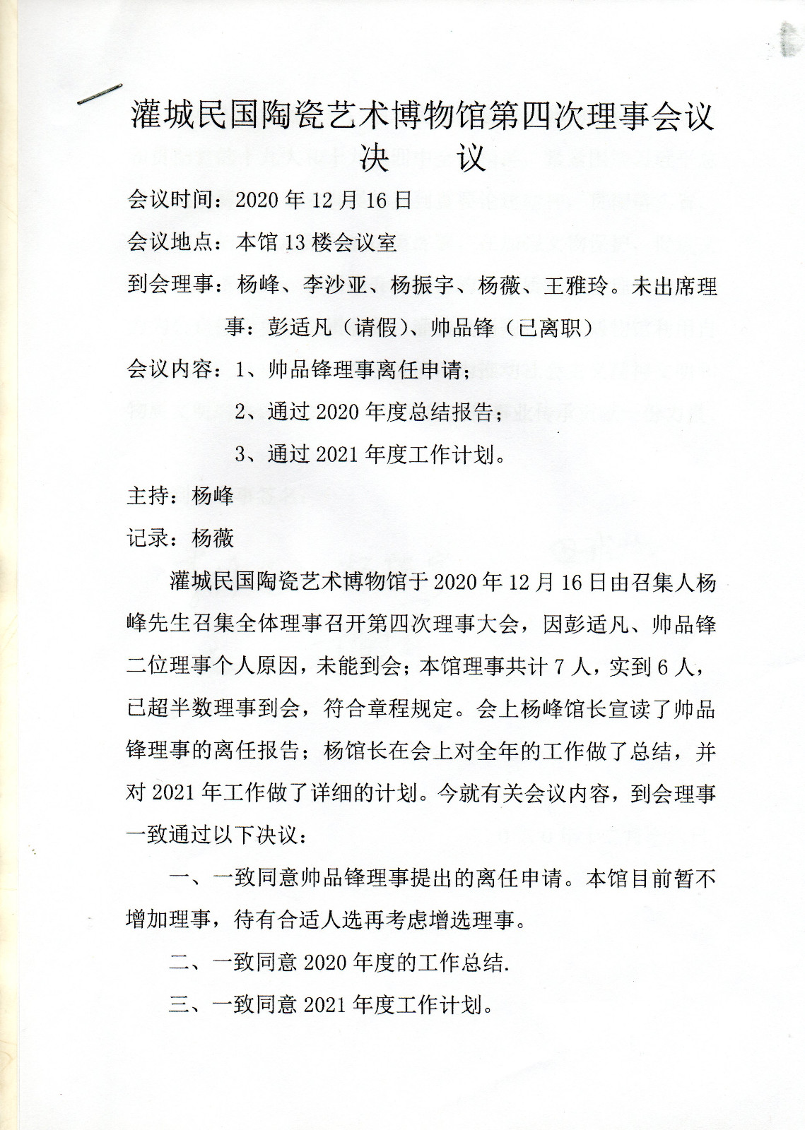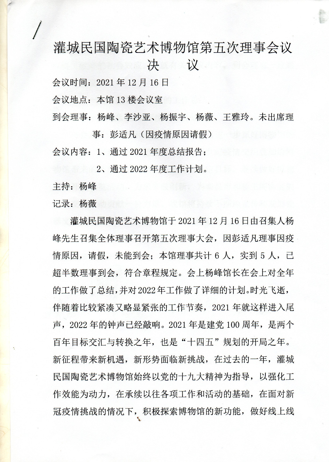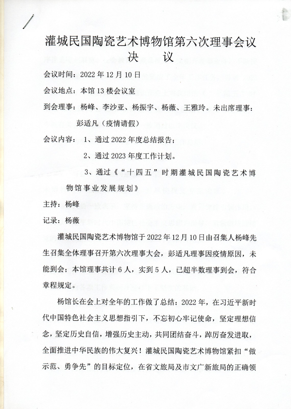 灌城民国陶瓷艺术博物馆四、五、六次理事会
